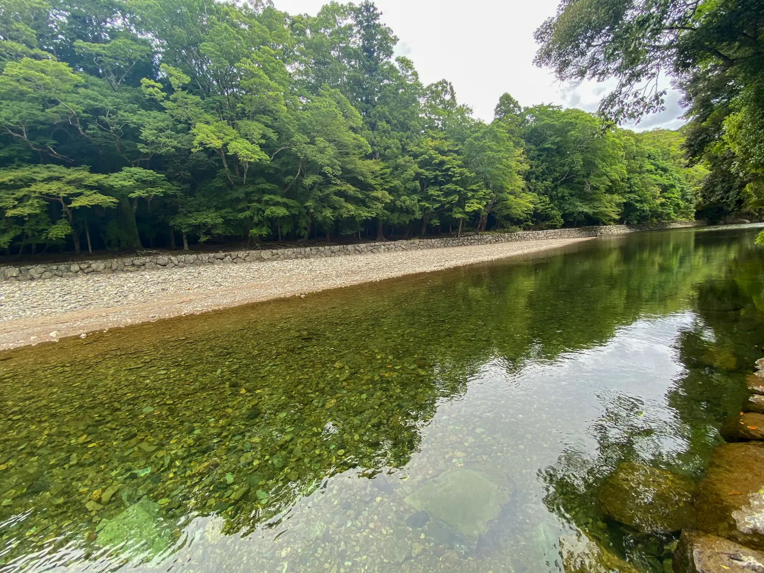 6月21日に日本の神宮の総本庁でもあり、日本国民の総氏神でもある「天照大御神」を祀る伊勢神宮内宮に参拝しました。伊勢神宮(皇大神宮)の御手水は五十鈴川という川で行います。最初は川って汚くないの?と思いましたが、とんでもなくきれいでした。驚きました。とても透き通っており、魚もしっかり見えます。これだけ人が行き来している場所の川がこんなにもきれいなのかと、感動すら憶えます。それだけでもとてもご利益もらえます。