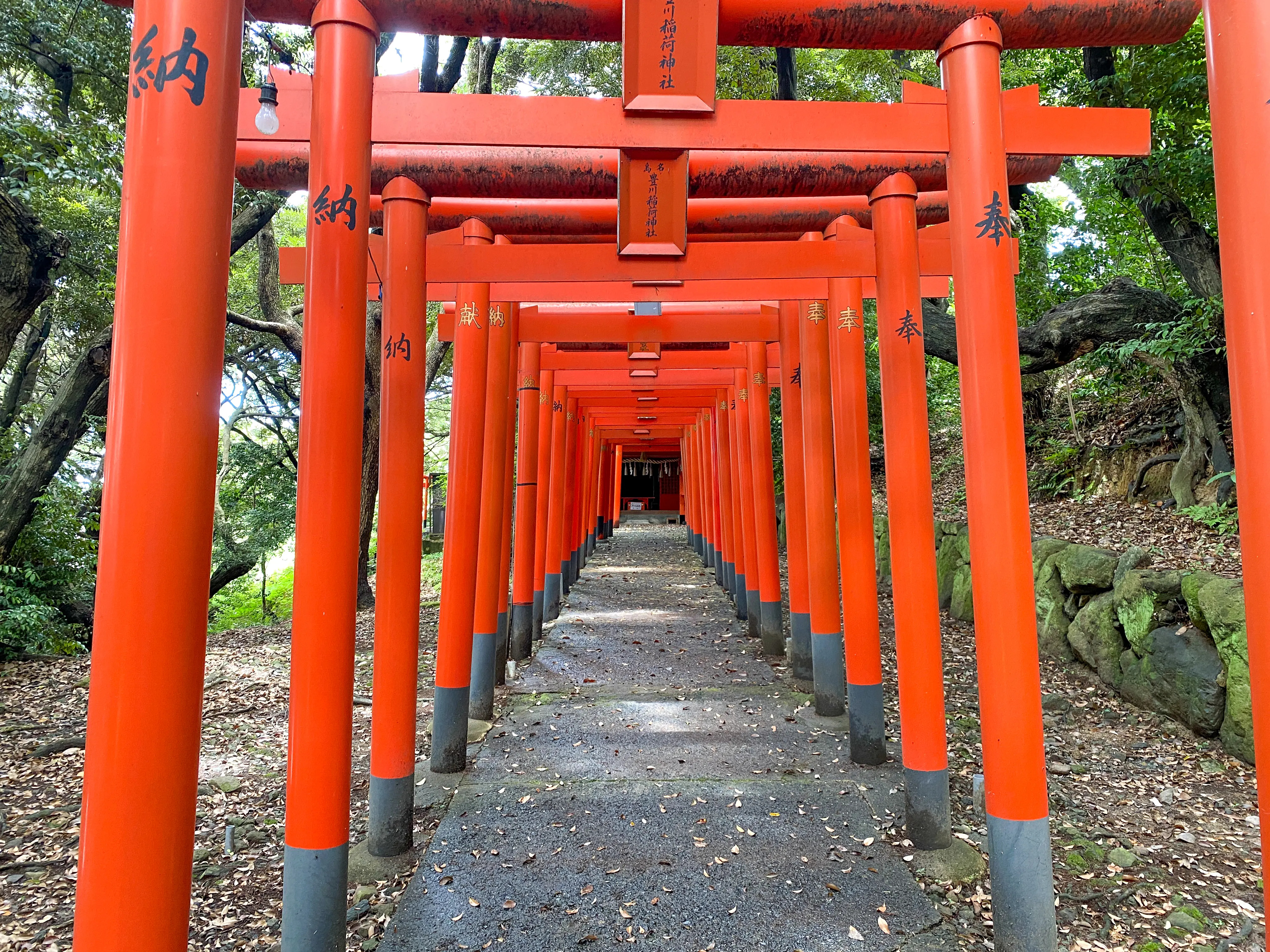 本殿の右側には社務所があったのですが、左側には「豊川稲荷神社」がありました。稲荷神社特有の赤い鳥居が何本も続いており、本殿と違った感覚になりました。