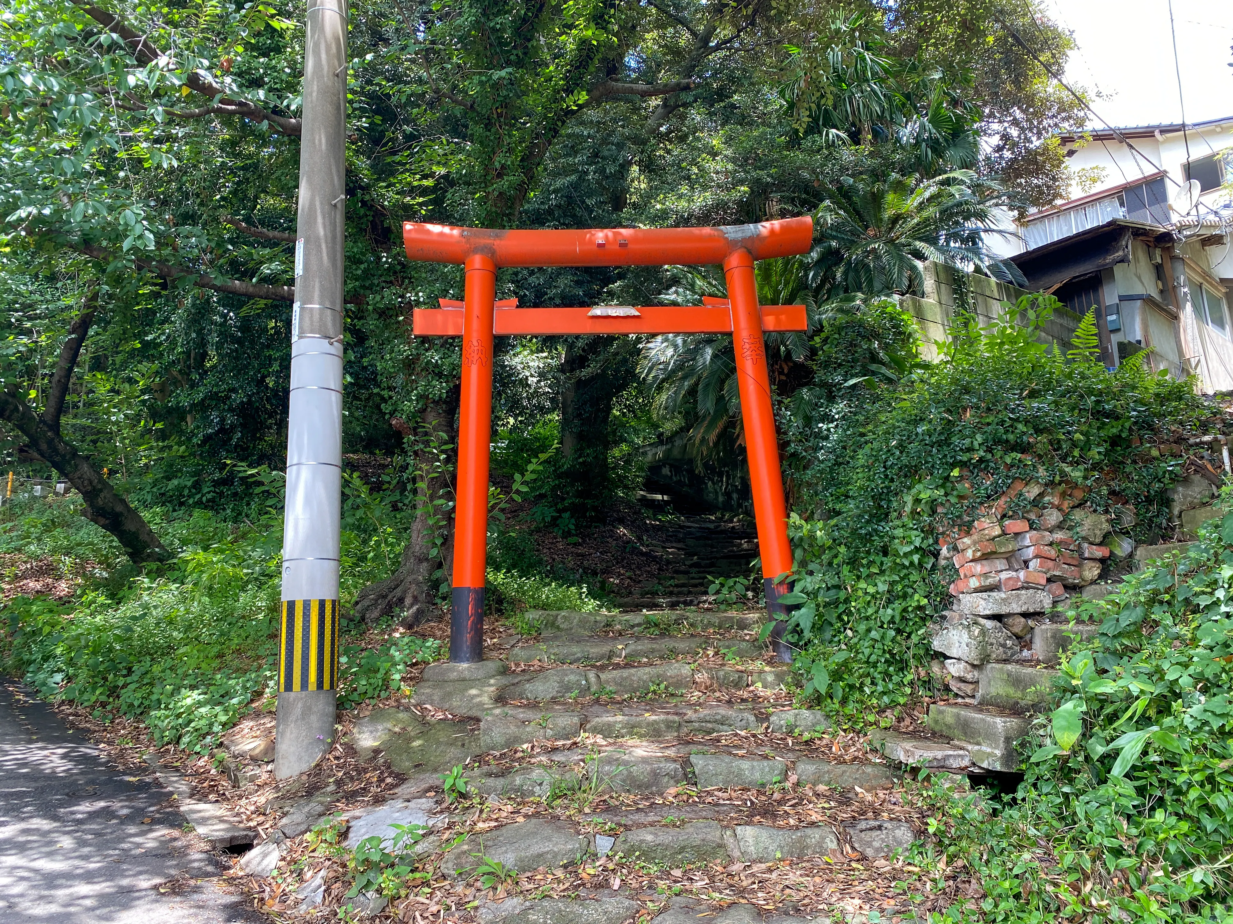 名島神社は海沿いを進むと現れます。ただ、注意して移動しないと、突然現れるので車だと見逃してしまうかもしれません。