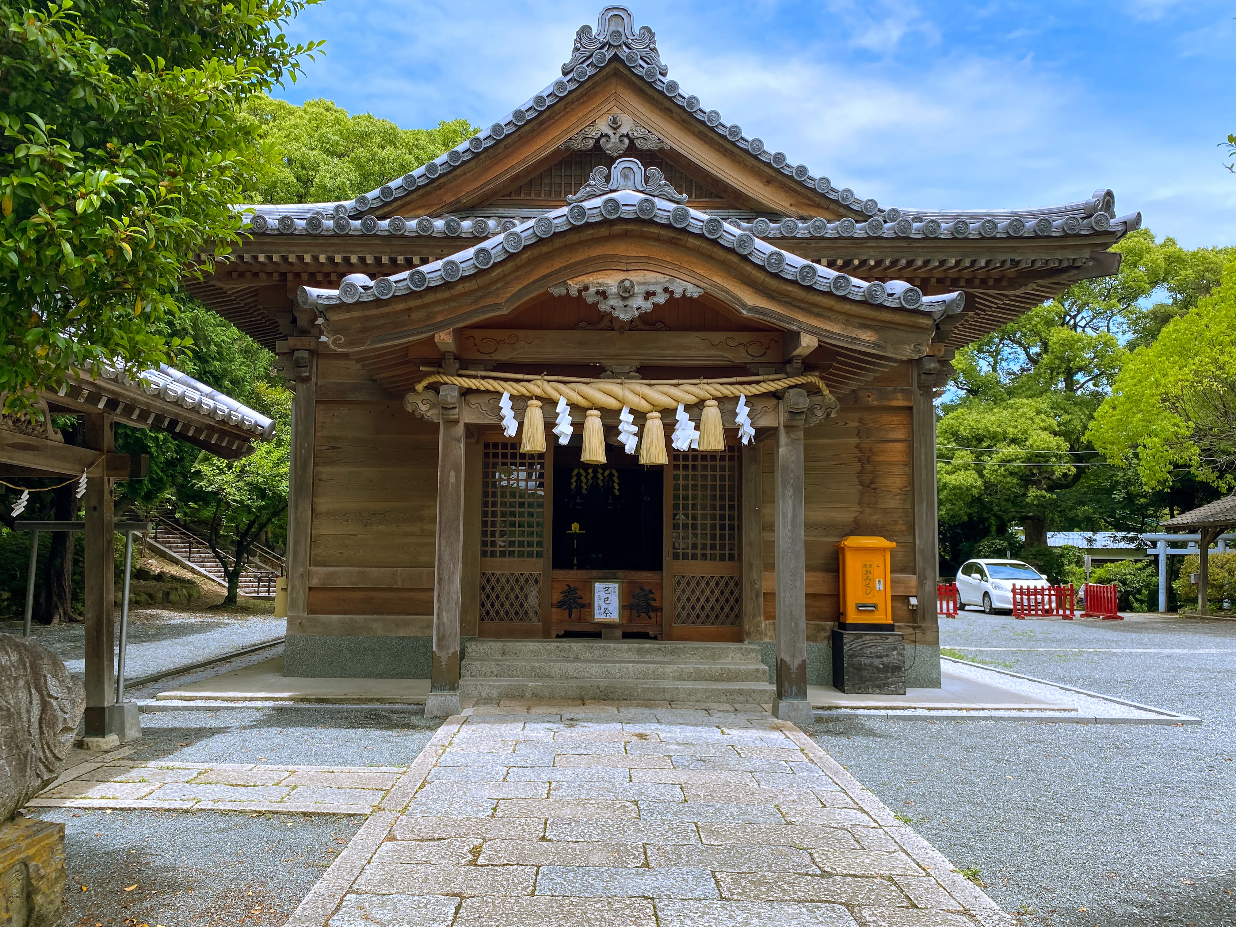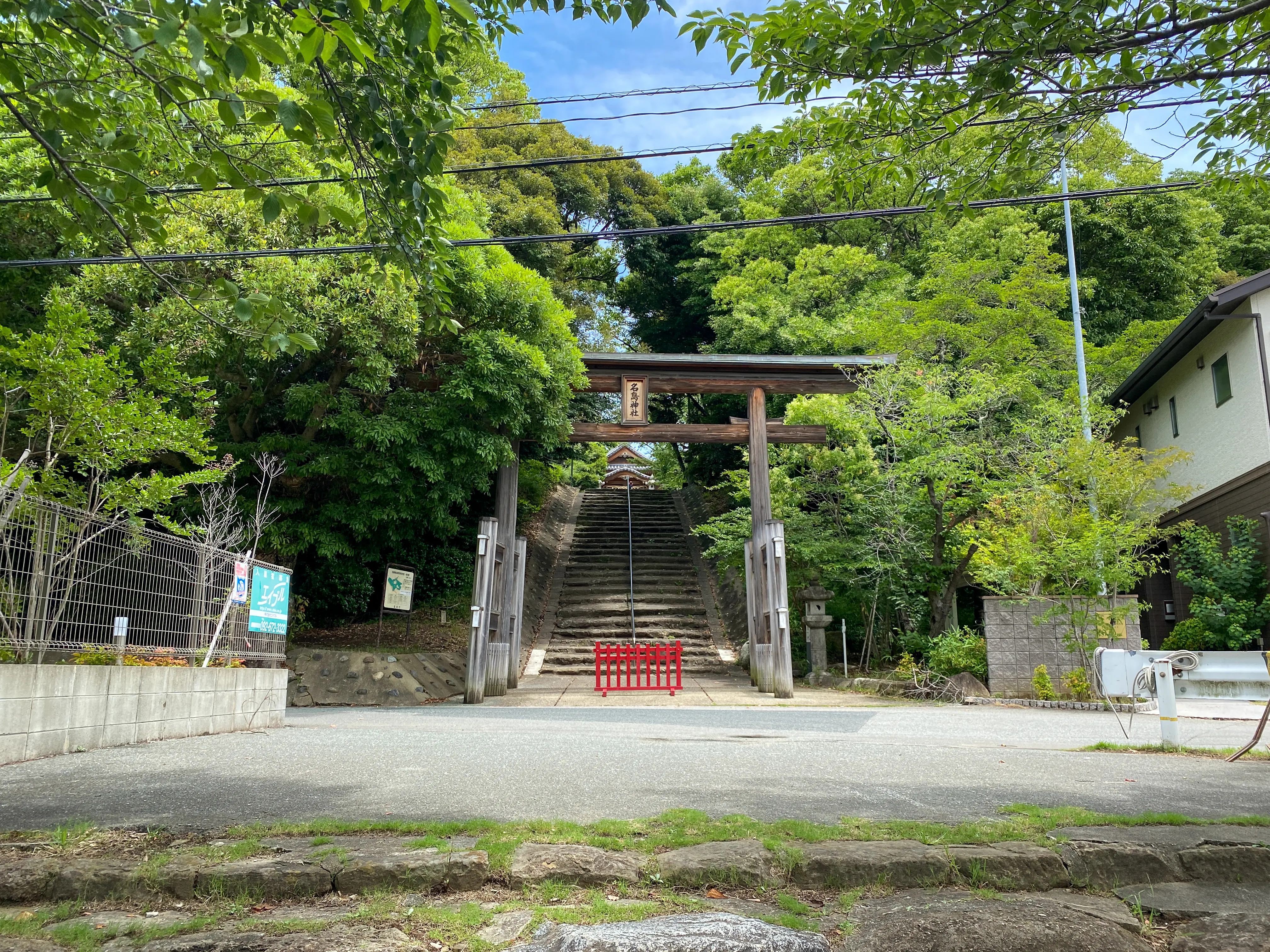 大きな木の鳥居の前には石の鳥居があります。周りはとてもきれいに整備されていました。八幡様(応神天皇)の母として有名な神功皇后縁の地らしく、ちょっとした観光スポットになっていました。