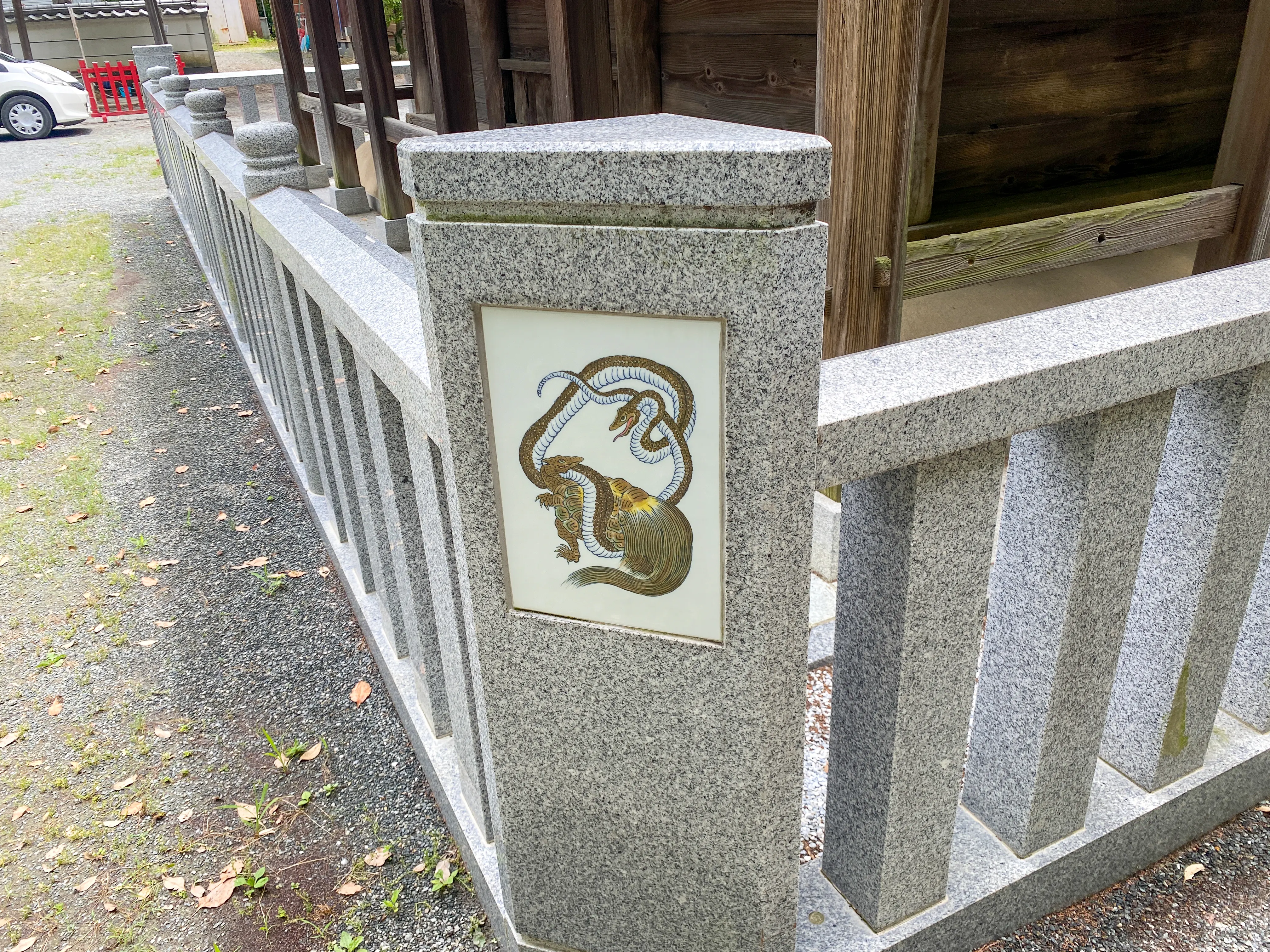 本殿を囲む石柱には蛇と亀が描かれていました。蛇は弁財天が持っていたとして有名ですし、亀は神功皇后縁の動物だったような気がします。